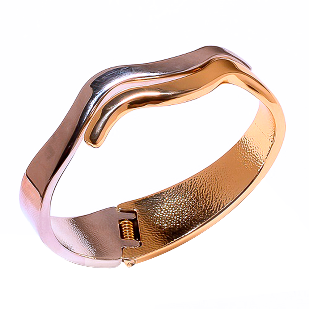 This sleek and sophisticated ethnicult bangle comes with a double cross dual metallic bands with a posh lustre. Wear it to add instant polish to your workwear ensembles. Comfortable open bangles with spring hinge.