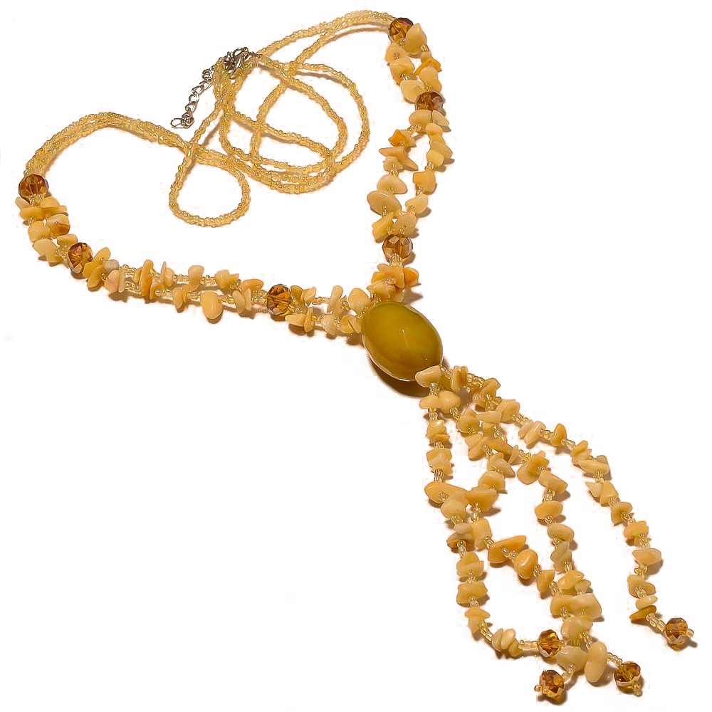 A strand of alternating stone beads presents the tassel pendant which forms the focal point of this unique necklace style. Adjust the length with our classic Chinese knot fastening and add a touch of bohemian styling with this striking piece.