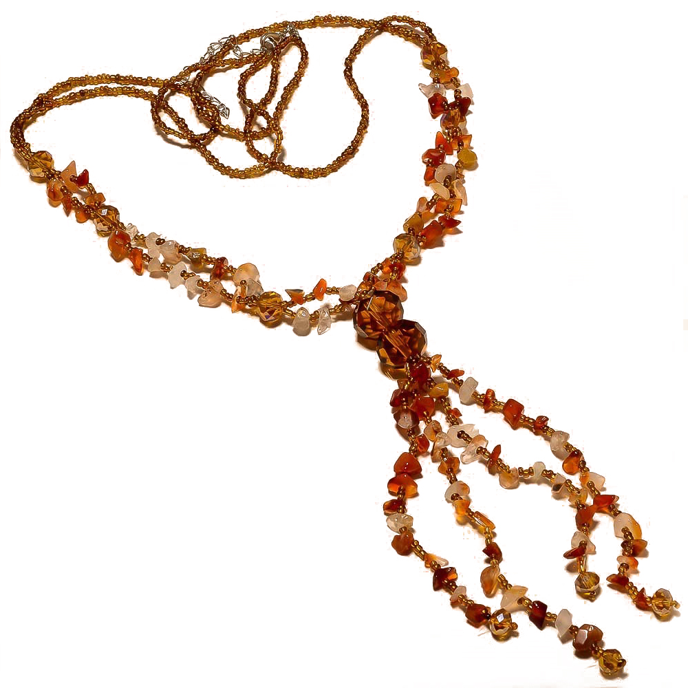 A strand of alternating stone beads presents the tassel pendant which forms the focal point of this unique necklace style. Adjust the length with our classic Chinese knot fastening and add a touch of bohemian styling with this striking piece.