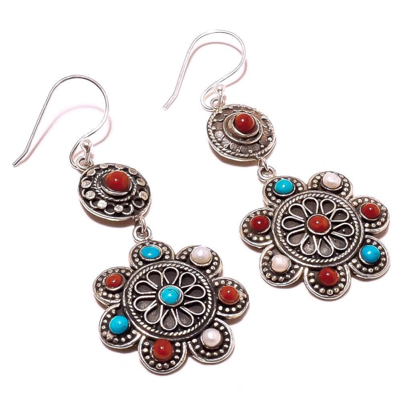 Boho earring from miotesoro with a combination of turquoise and coral beads give it an ethereal look.