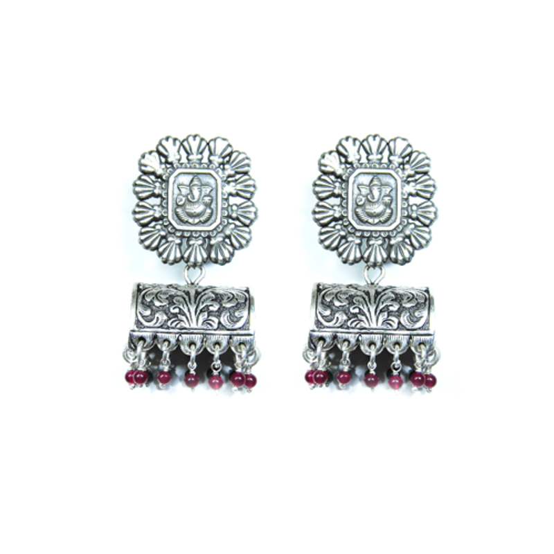 Beautiful ganesha motif on this two peice chandelier looks exotic and charming. The amethyst beads on the bottom fringe adds to the colour. (Tops detachable. You can choose tops of your choice from our ethnic range to combine with your chandeliers. Call us for combinations)
