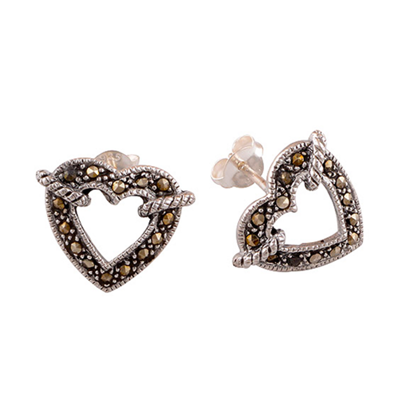 Fashionable heart earrings fitted with marcasite on 92.5 silver.